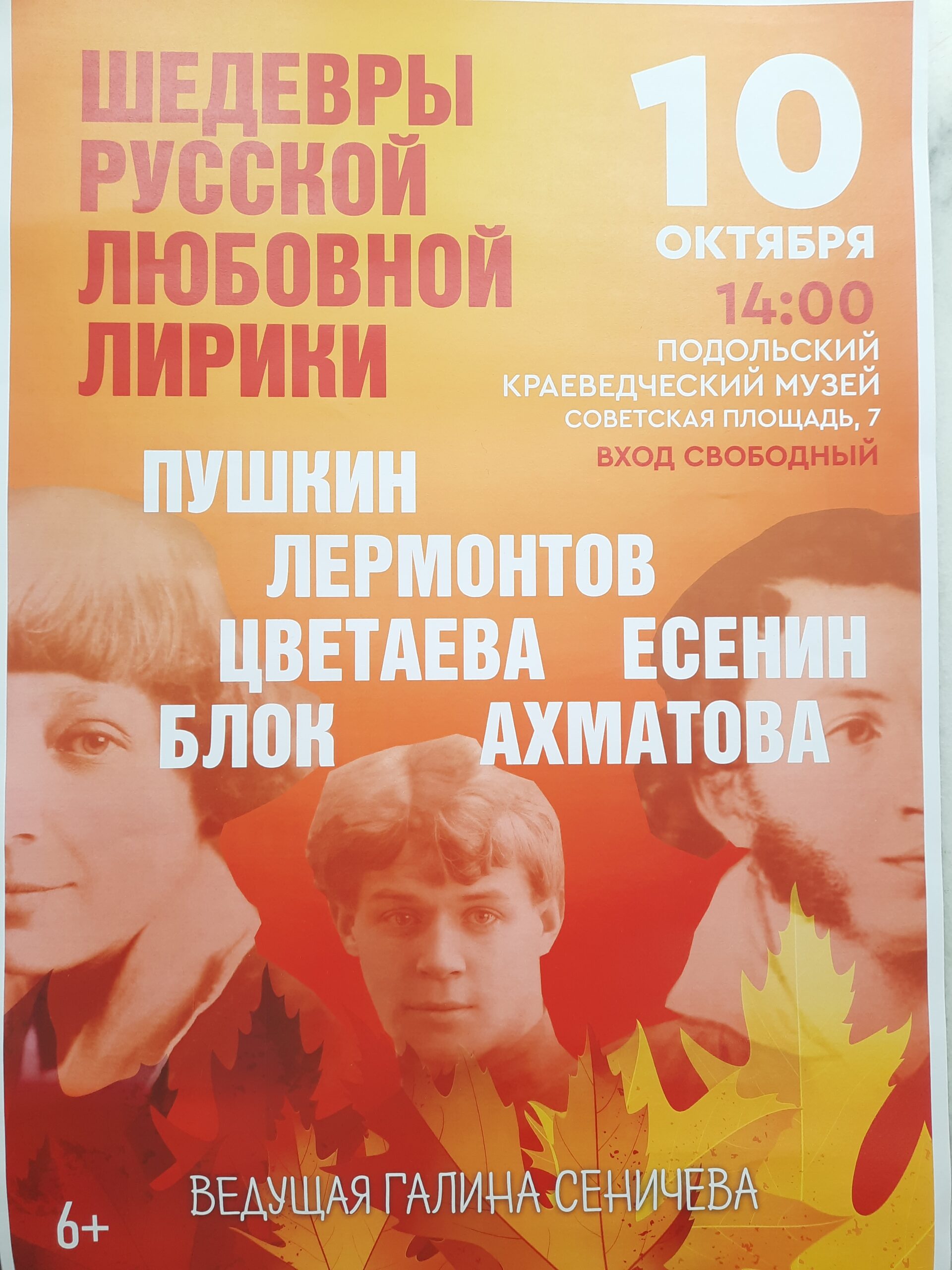 10 октября в Подольском краеведческом музее будет проводиться 16-я встреча литературно-музыкального салона «Времена», посвящённая шедеврам русской любовной лирики🍁🍂.