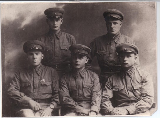 📸Фондовая фотография Подольского краеведческого музея: фото групповое. Курсанты полковой школы. Н.Ф. Кюнг (слева в верхнем ряду), В. Бартель, Р. Гельман, Н. Рейман, Р. Зиверт. Брестская крепость, 2 мая 1940 г.