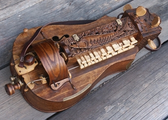 Колёсная лира (фото 1) – струнный музыкальный инструмент. По методу воздействия на струну аналогична смычковым инструментам, только роль смычка в ней выполняет вращающееся колесо.