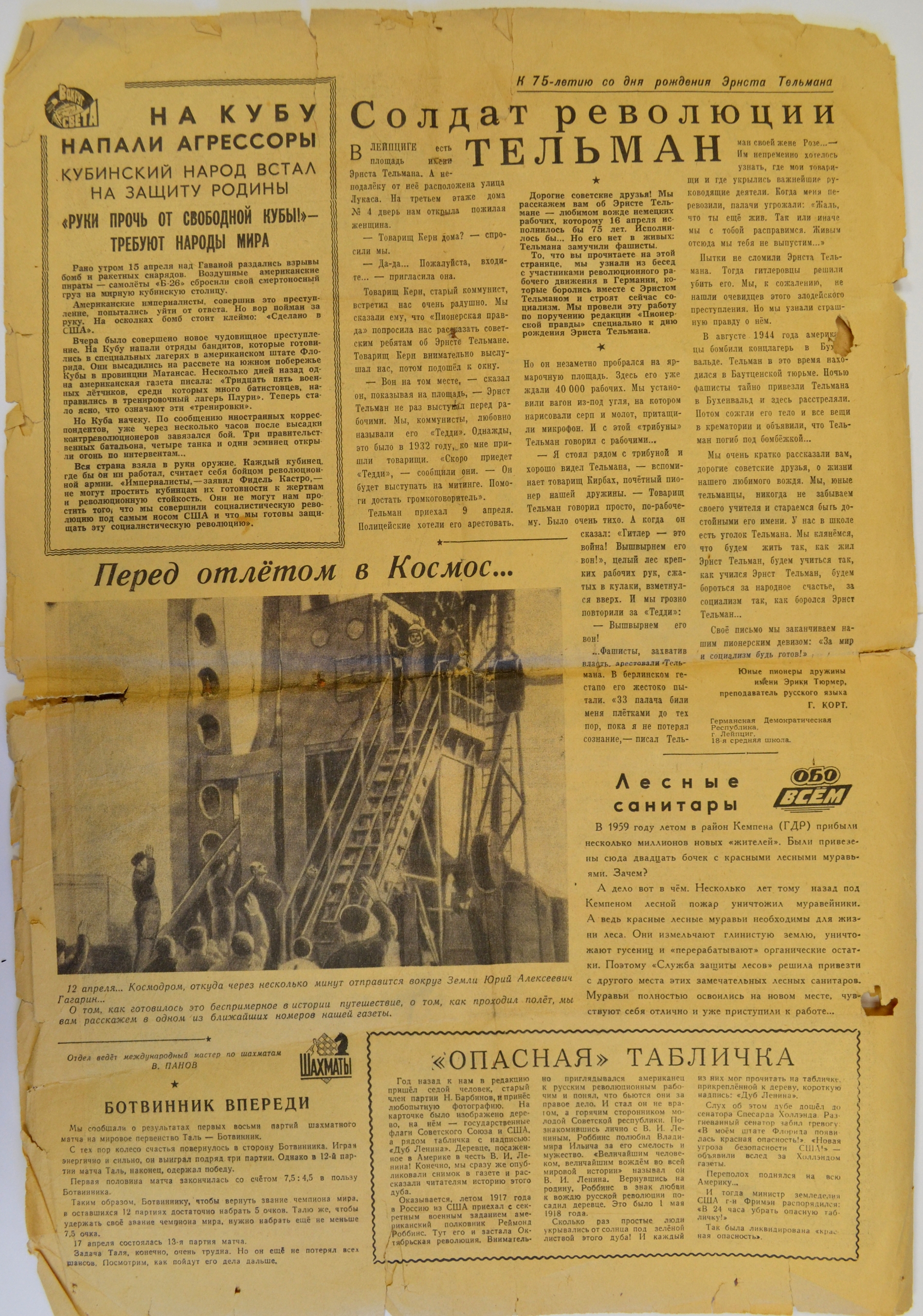 📔 Представляем уникальный экземпляр газеты «Пионерская правда» №31 (4470). Вторник, 18 апреля 1961 г. Редактор газеты Т. В. Матвеева (возглавляла редакцию 13.01.1953—21.04.1961).