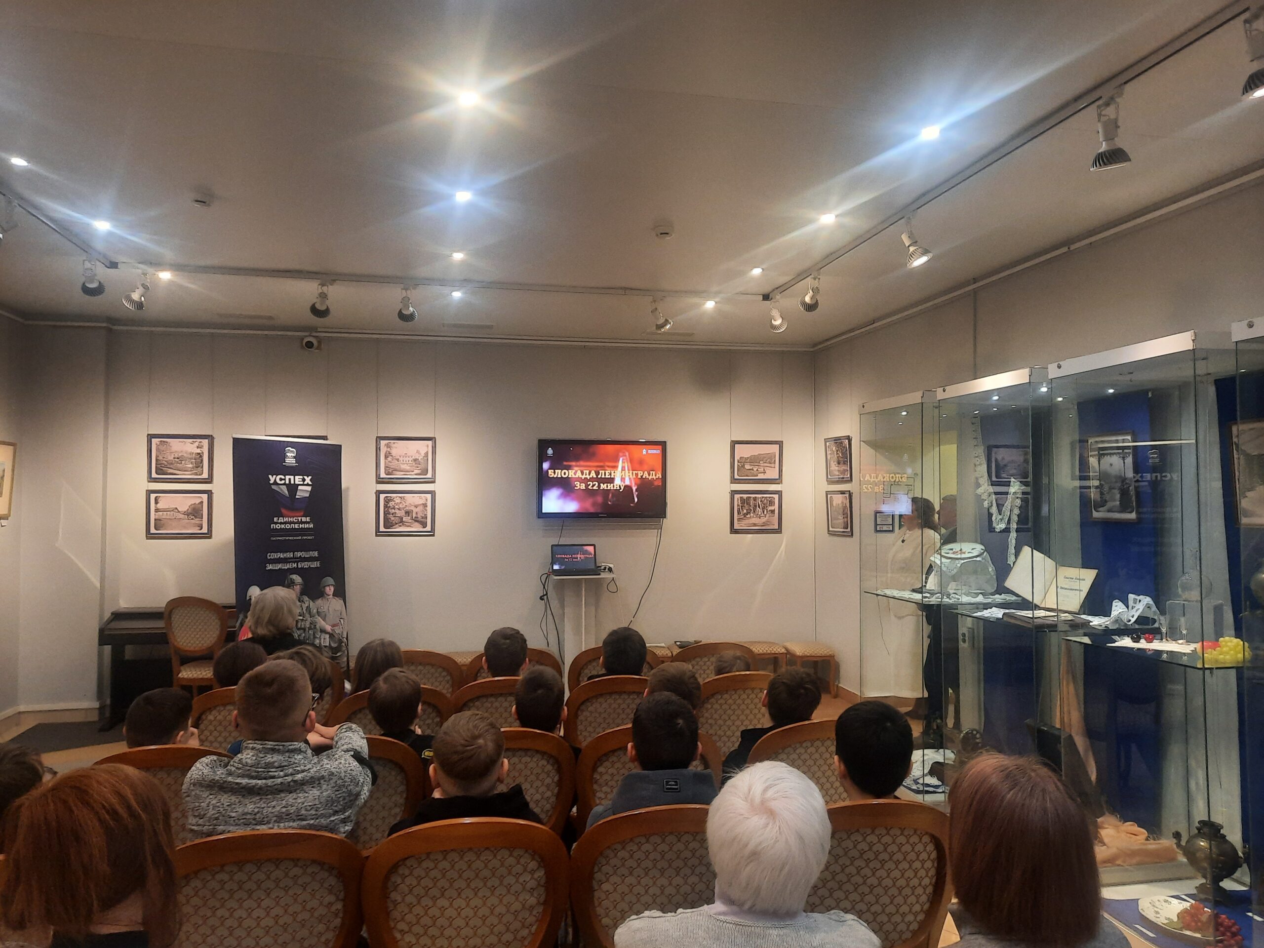 💥Мероприятие состояло из лекции с презентацией об основных этапах Великой Отечественной войны и о блокаде Ленинграда, показа документального фильма «872 дня ада» (героических эпизодов обороны Ленинграда), экскурсии «Подольчане — защитники блокадного Ленинграда» с рассказом о персоналиях, представленных в экспозиции нашего музея — художнике-фронтовике Анатолии Ивановиче Чалове, военном враче Владимире Владимировиче Гемпеле, лётчике, Герое Советского Союза Борисе Петровиче Чистове.